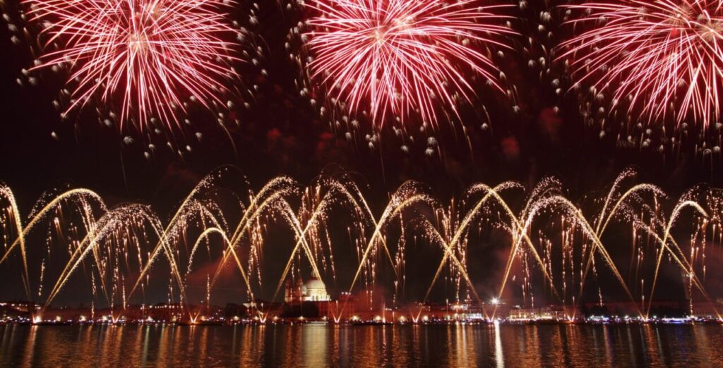 - Viewing of the fireworks in St. Mark’s Basin aboard a comfortable water taxi. Departure and return near the restaurant.