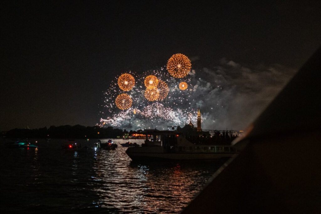 After dinner, a comfortable water taxi will be waiting for you just a few steps from the restaurant. Hop aboard and find a spot in St. Mark’s Basin to admire the fireworks display reflected on the water from a privileged vantage point.
